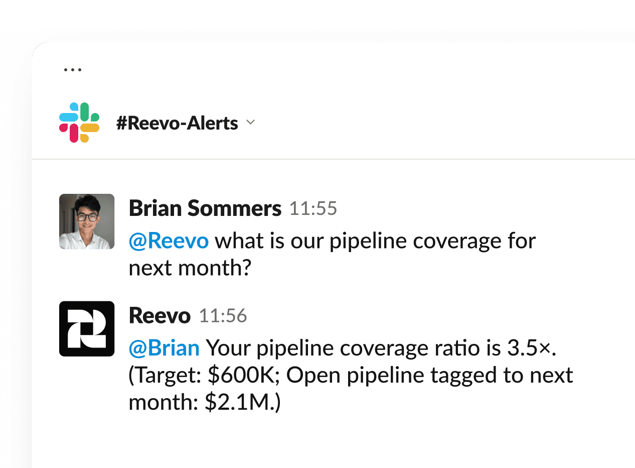 Need to know which rep is ghosting leads or what’s holding back your Q3 pipeline? Just ask Reevo and you’ll get a real answer, not a link to a spreadsheet.