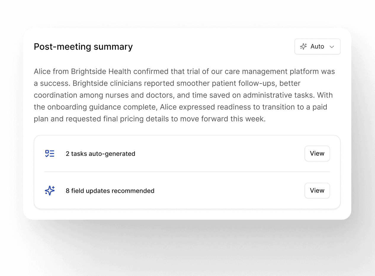 From creating follow-up tasks after a call to sending renewal reminders, Reevo handles the operational details so your team can focus on what they were hired to do.